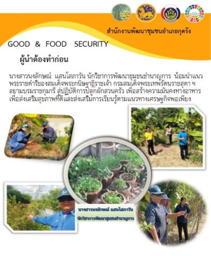 เจ้าหน้าที่สำนักงานพัฒนาชุมชนอำเภอกุดรัง กลุ่ม/องค์กรเครือข่าย ร่วมกันน้อมนําแนวพระราชดําริของสมเด็จพระกนิษฐาธิราชเจ้า กรมสมเด็จพระเทพรัตนราชสุดา ฯ สยามบรมราชกุมารี สู่ปฏิบัติการปลูกผักสวนครัว เพื่อสร้างความมันคงทางอาหาร เพื่อส่งเสริมสุขภาพที่ดีและส่งเสริมการเรียนรู้ตามแนวทางเศรษฐกิจพอเพียง